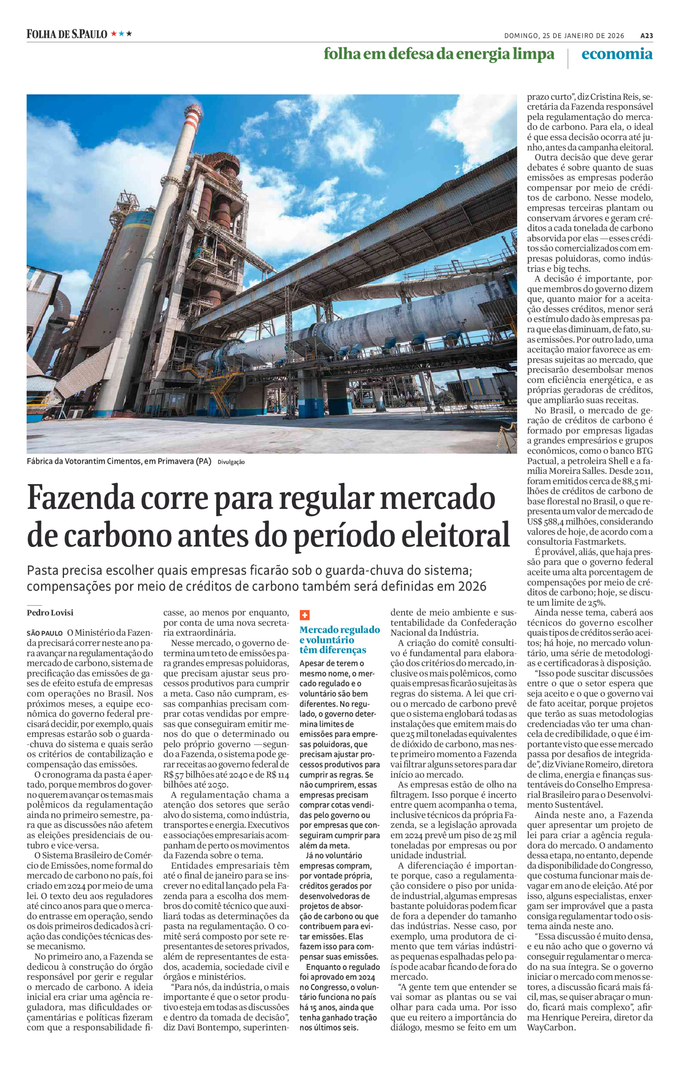 Pasta precisa escolher quais empresas ficarão sob o guarda-chuva do sistema; compensações por meio de créditos de carbono também será definidas em 2026. Avance