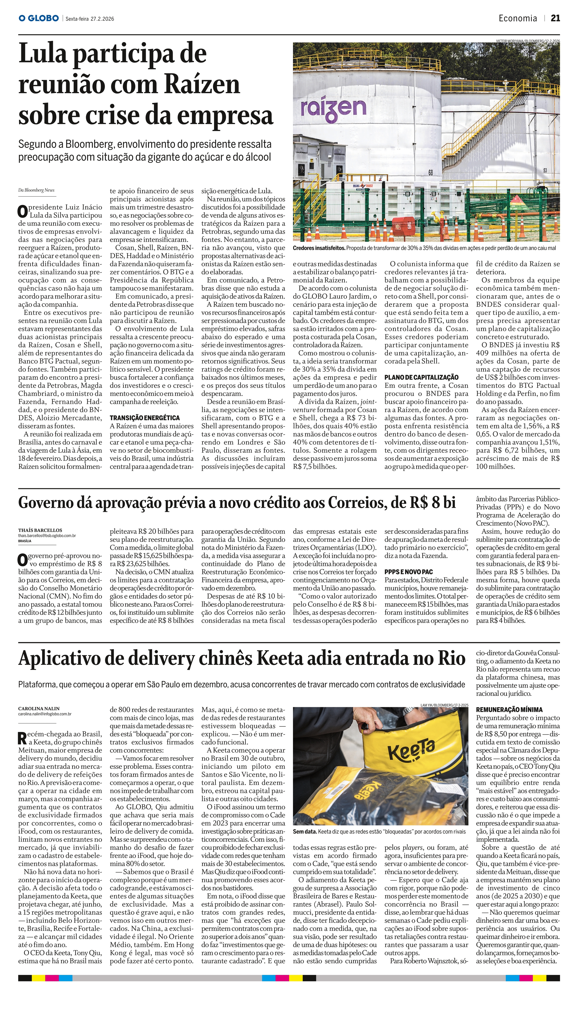 Segundo a Bloomberg, envolvimento do presidente ressalta preocupação com situação da gigante do açúcar e do álcool. Informe-se