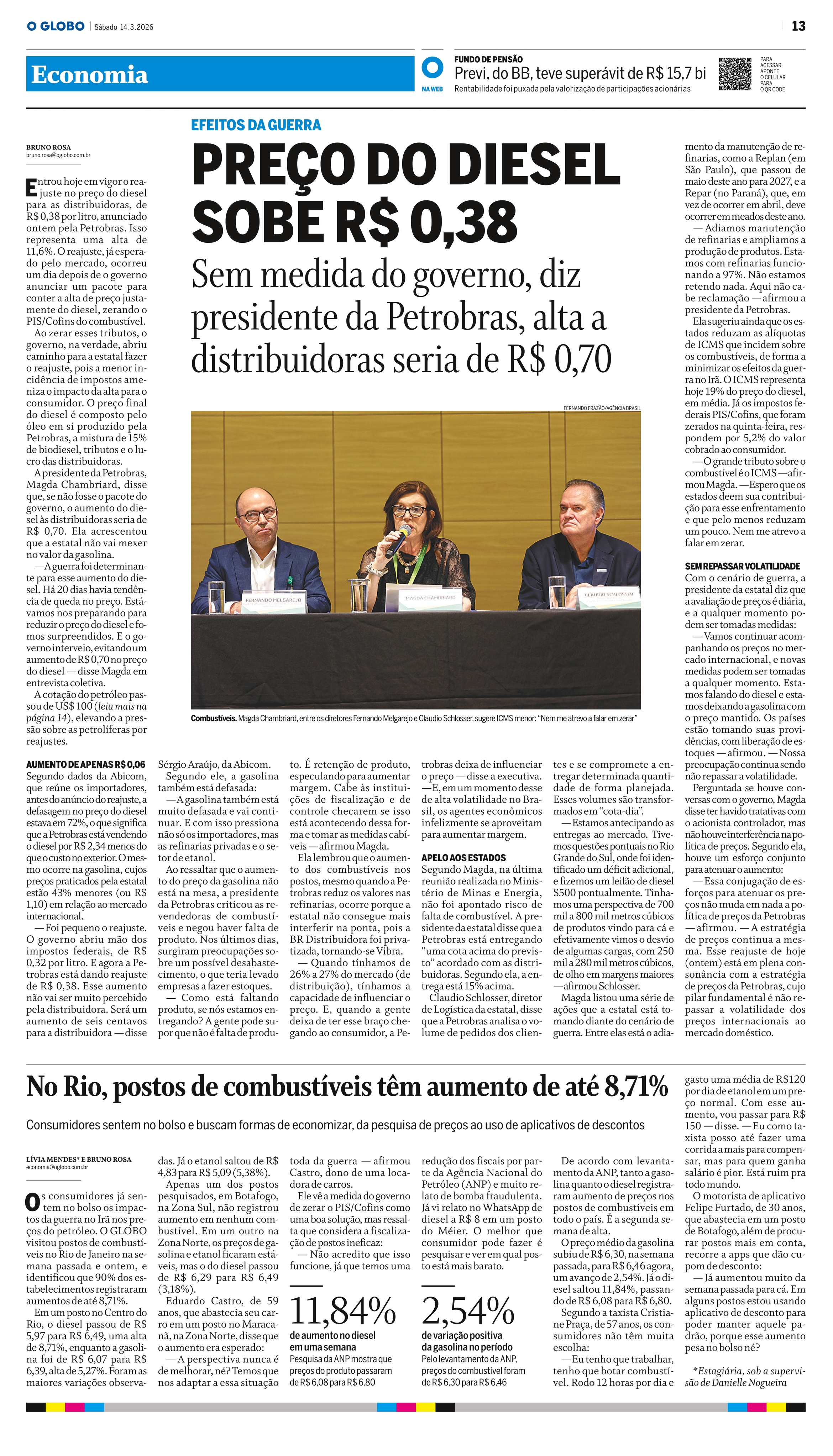 Magda Chambriard enfatizou que não houve interferência do governo na decisão de reajustar o preço do diesel. Calcule