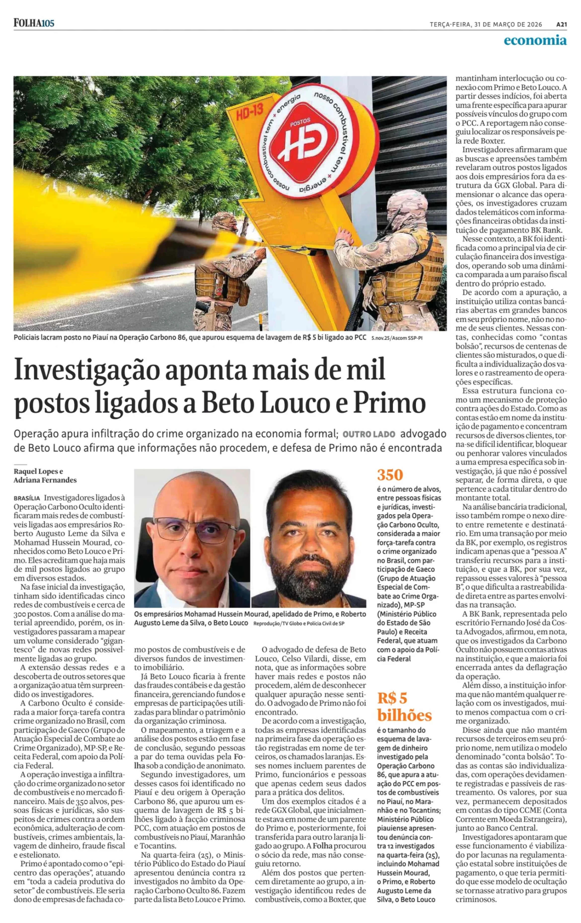Mais de mil postos estariam ligados a Beto Louco e Primo
